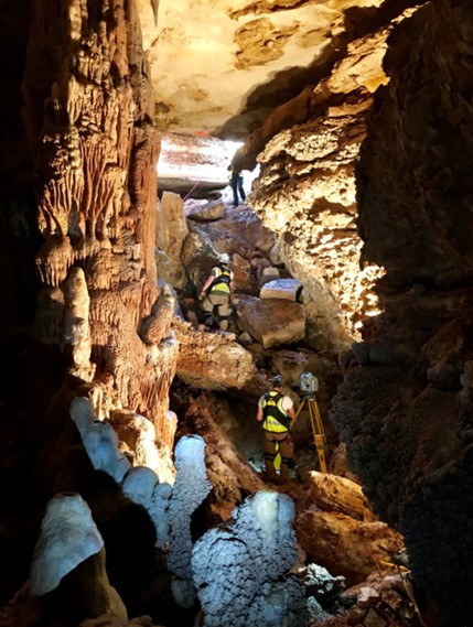 In the early morning hours of February 8th 2018, residents of a neighborhood north of Austin, Texas were awakened by the sound of “thunder”. Hundreds of tons of the ceiling of a previously undetected cavern had collapsed taking with it portions of Cambria Drive, the adjacent sidewalk, and underground utilities. Approximately 750,000 gallons of water washed directly into the Edwards Aquifer as the nearby water tower emptied itself through the ruptured water main. By first light commuters and school kids encountered a yawning void in the earth expelling a column of water vapor into the frosty sky. Fortunately, neither sewer nor natural gas utilities were compromised, and no one was harmed. This presentation documents the aftermath and the eight-month process of protecting the cave, the aquifer, and associated habitat for threatened and endangered species, while restoring full function to the neighborhood. The exploration and mapping process is discussed, as well as the development of site protection measures, regulatory compliance strategies, occupational safety measures, and the cave closure engineering and construction plans.